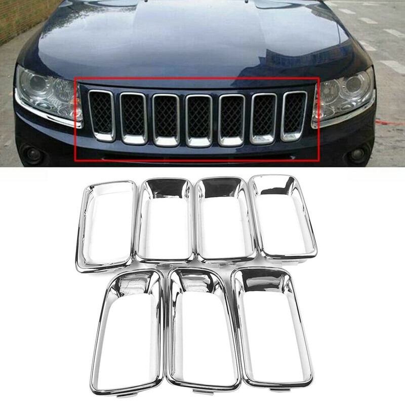 TOTMOX Compatible with Jeep Compass 2011-2016, Car Accessories Black Chrome Front Grille Vent Hole Frame Trim Grille Trim Molding Insert, Replace 68109865AA, Chrome/Black, 7 PCS