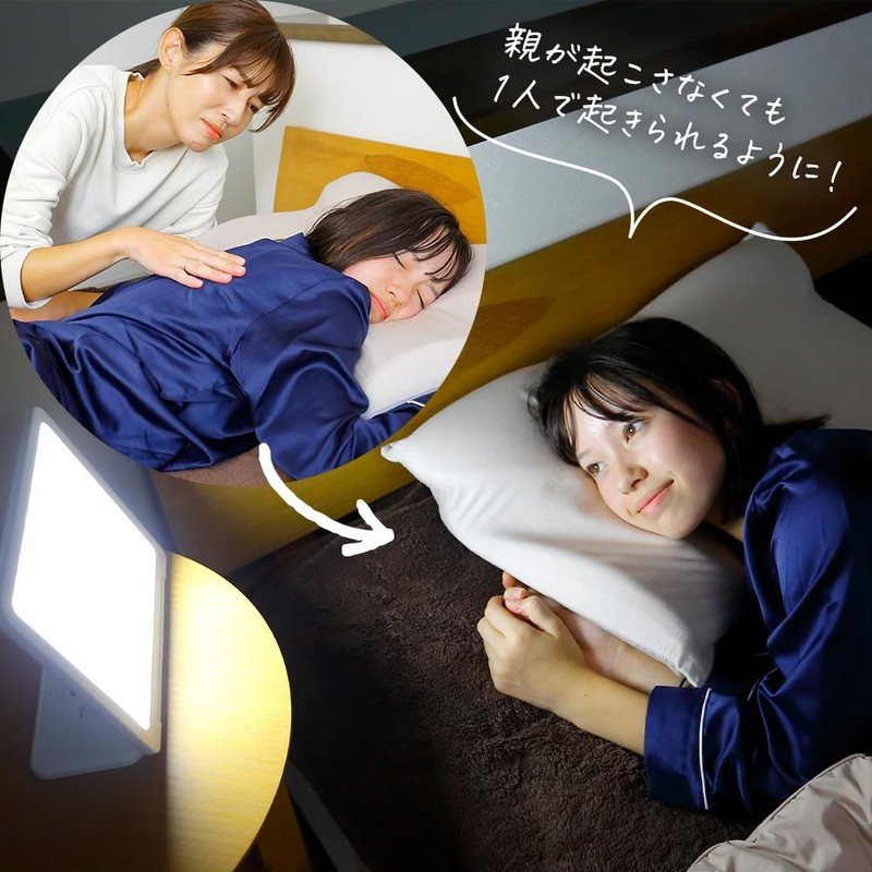 [Difference from Totonoe Lights] It is one larger than the "totonoe light" and has a white light that encourages you to wake up in the morning. Recommended for those who want to wake up and want to wake up comfortably.