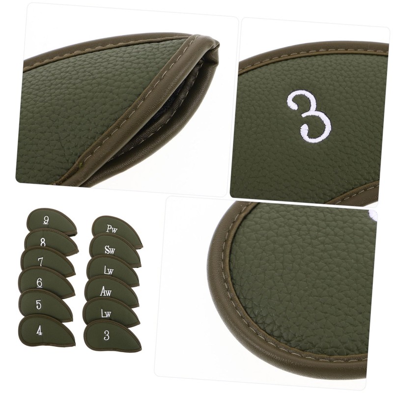 Totority 12pcs PU Golf Iron Covers Thickened Fake Leather Club Head Protectors Reusable Putter Sleeves for Collision Resistance and Damage Prevention Green