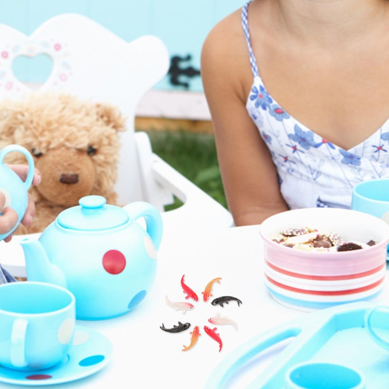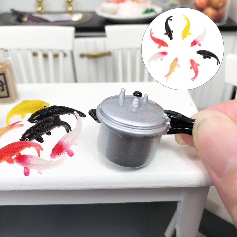 - Small plastic fish--Made of premium plastic material, this dollhouse goldfish figurine is safe and can be used for a long time