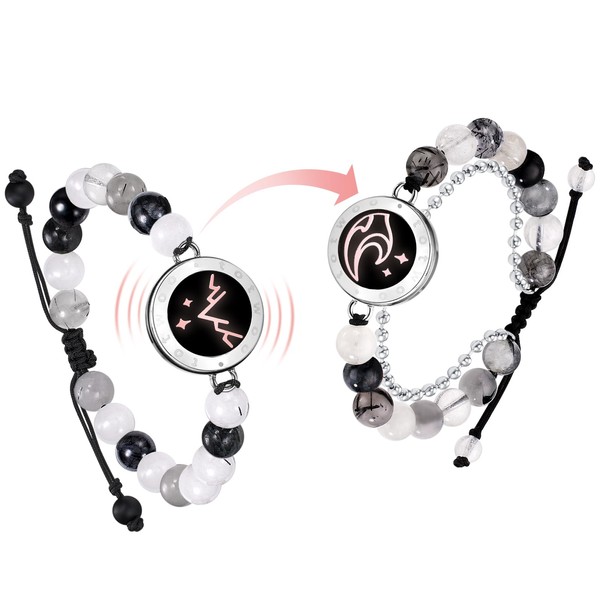 - 🍀 Vibration reminder: Totwoo Lunarise partner bracelet is not only a long-distance relationship bracelet that sends light signals, but also has a vibrating reminder function. For example, for important holidays such as anniversaries, Valentine's Day, wedding anniversaries and so on, so you won't miss any important holidays! You can also add up to 3 emergency contacts, and when they call, the bracelet will alert you by vibration and flashing.