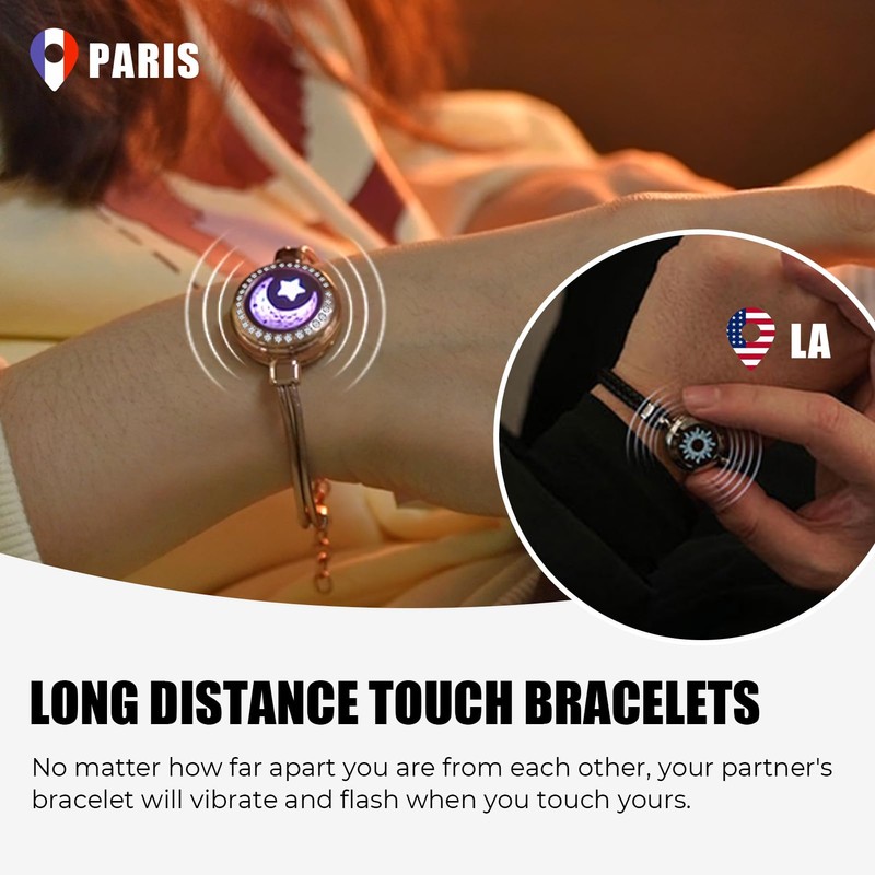 - 💝[Stay Connected to Your Loved One]No matter how far you are apart, simply tap your long distance touch bracelet, and the other touch bracelet will vibrate and light up in response, expressing that you're thinking of your loved one. This is a great gift for couples, families, and close friends.