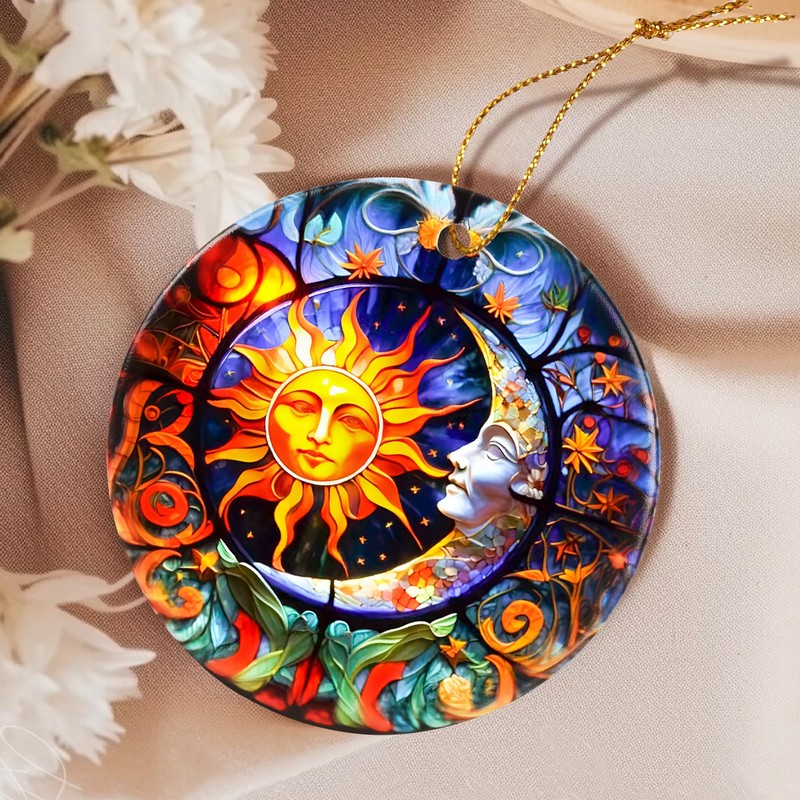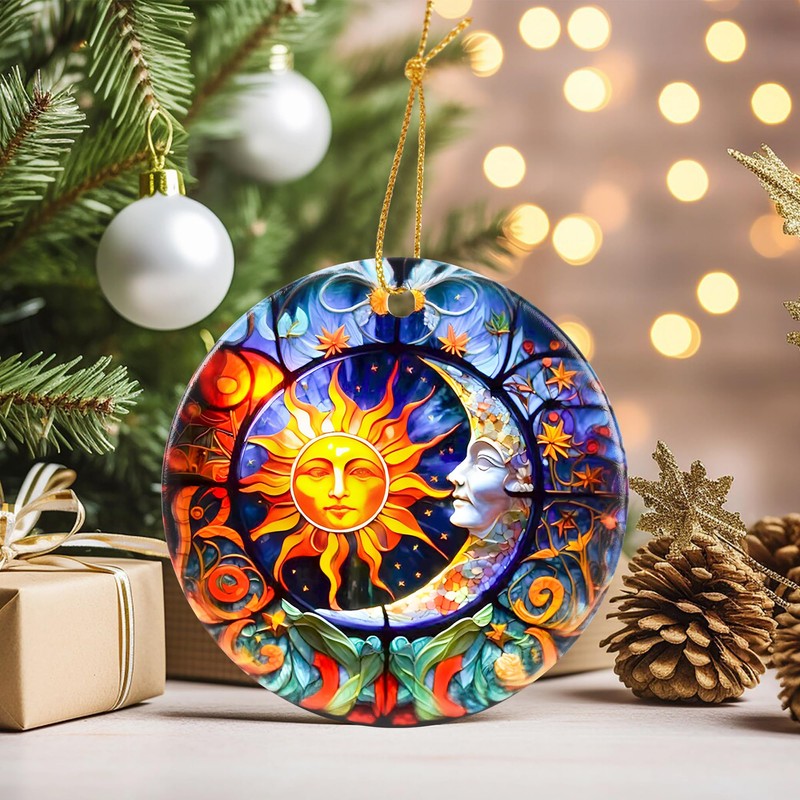 Touber Christmas Sun and Moon Ceramic Ornament, 2024 Christmas Tree Ornament, Sun and Moon Decor, Holiday Decorations, Christmas Keepsake, Sun and Moon Gift