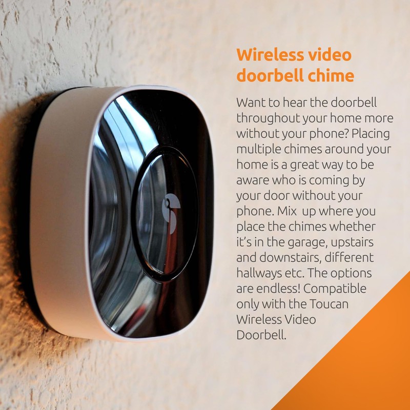 • Battery Powered Convenience - Operate your Toucan Wireless Video Doorbell Chime with ease as it requires only 2 AA batteries. Benefit from the 100% completely wire-free design, making installation and maintenance a breeze for any homeowner.