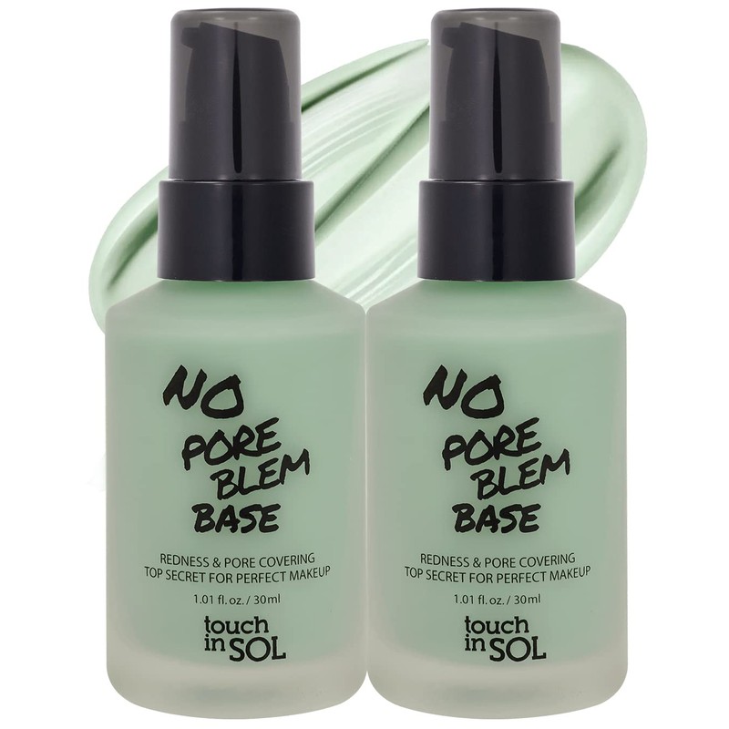 TOUCH IN SOL Redness Correcting Base Primer - Pore Minimizing Green Toned Makeup Base - Tone Neutralizing before Foundation - Minimize Rosacea, Redness - No Pore Blem Primer Base, 1.01 fl.oz. 2 Pack