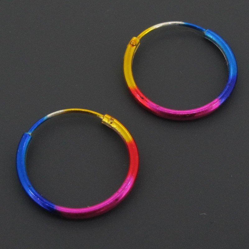 Touch Jewellery 925 Sterling Silver 14mm Hoop Earrings Pink Blue Yellow Enamel