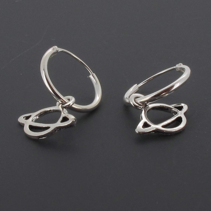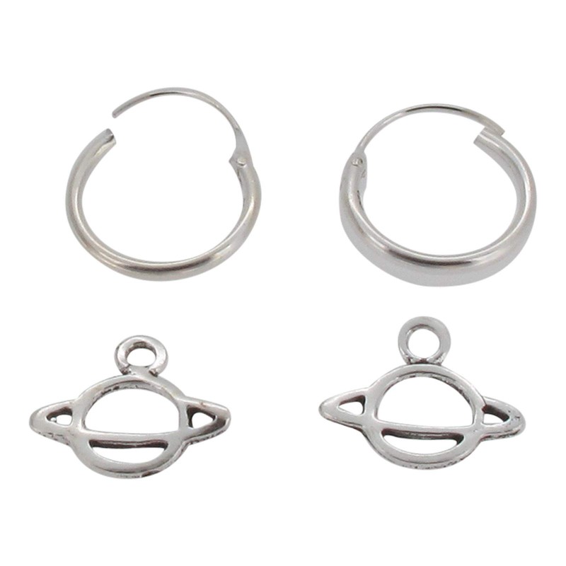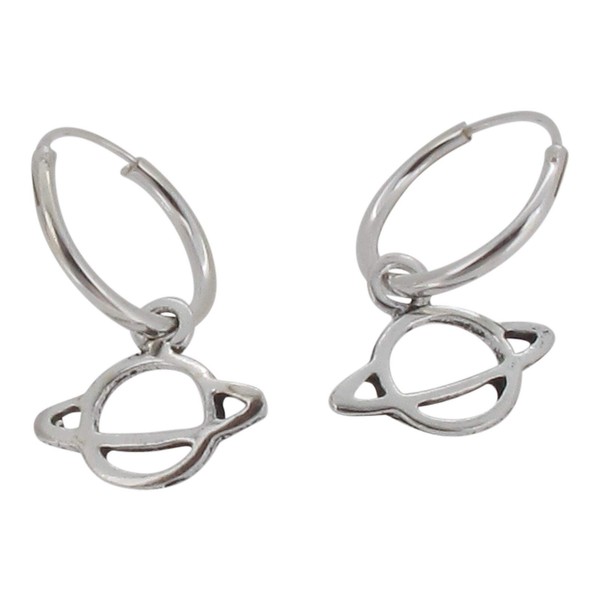Touch Jewellery 925 Sterling Silver Hoop Earrings with Dangling Planet Charm