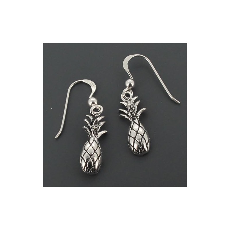 Touch Jewellery 925 Sterling Silver Pineapple Drop Earrings with Oxidized Detail