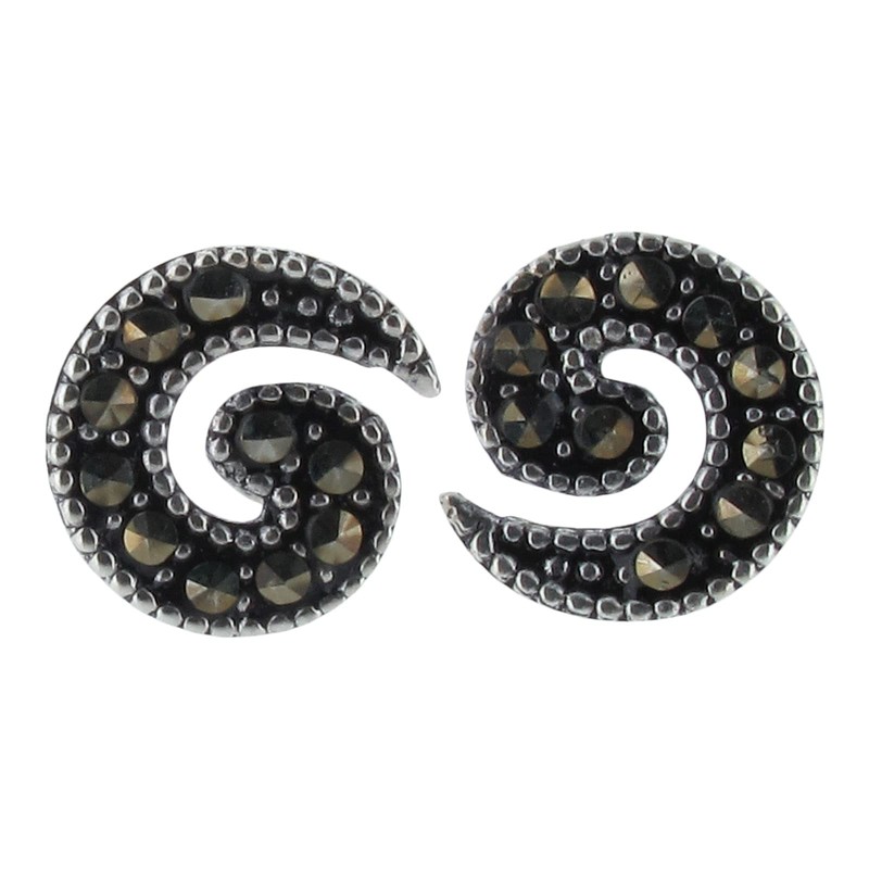 Touch Jewellery 925 Stirling Silver Swirl Stud Earrings With Marcasite