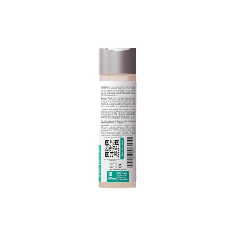 Touch Keratosis Pilaris Exfoliating Body Wash Cleanser - KP Treatment with 15% Glycolic Acid, 2% Salicylic Acid, Hyaluronic Acid - Low pH - Smooths Rough & Bumpy Skin - Gets Rid Of Redness, 8 Ounce