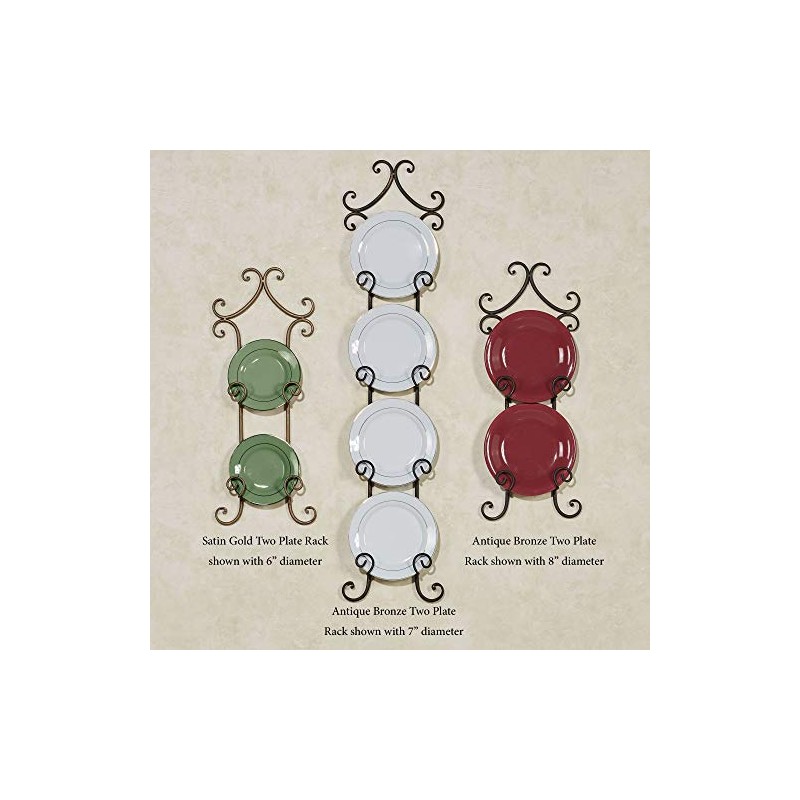 Touch of Class Regalla Petite - Vertical Plate Display - Hanging Plate Rack - Satin Gold or Antique Bronze Finish, Two-Plate Rack is 22 inches high, The Four-Plate is 38, Mounting Hardware Included