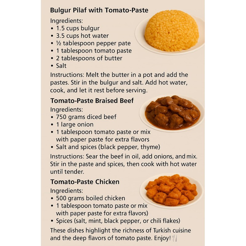 - 🍲 Versatile Ingredient: Perfect For Adding Depth To Stews, Sauces, Marinades, Or As A Flavorful Spread Straight from the Fields — Sourced from premium-quality tomatoes in Hatay, Turkiye.