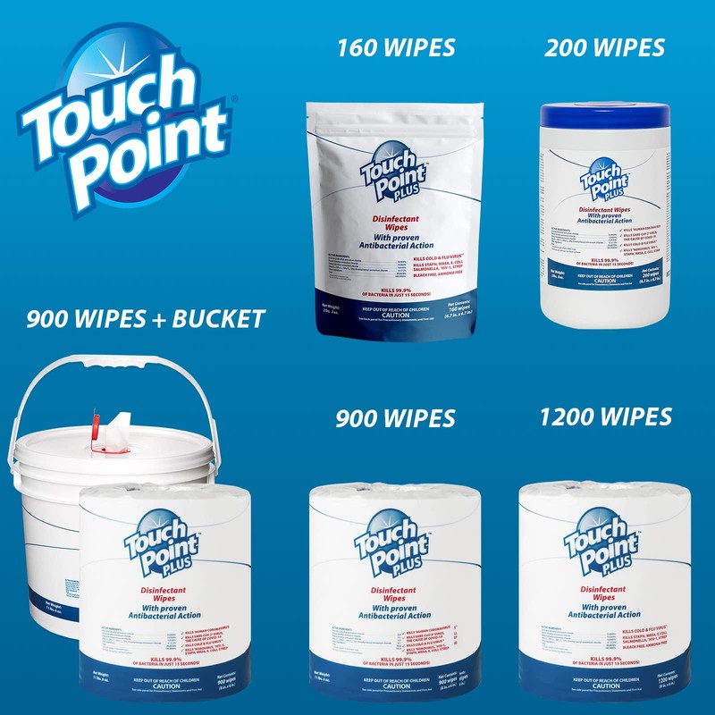 - EASE OF USE CONVENIENCE: Touch Point Plus Disinfectant Wipes in this handy pop-up dispenser bucket simplify your cleaning routine. With their pre-moistened formula, you can skip the hassle of additional cleaning solutions or water. Just grab a wipe and swipe it across the desired surface. Whether you're at home, in the office, or on the go, the compact and portable packaging ensures that these wipes are always within reach.