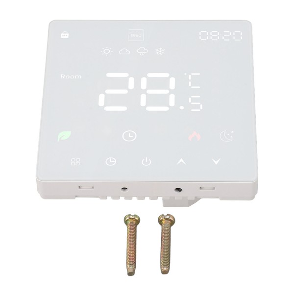 1、APPLICABLE SCENARIO: The temperature controller can be use in hotels, villas, apartments, office buildings, hospitals, schools, shopping malls, sports venues, leisure places, supermarket, warehouse, etc. 2、EXCELLENT PERFORMANCE: Intelligent floor heating thermostat, comfortable temperature control, low power consumption, with touch buttons, double temperature display 3、ACCURATE CONTROL: Touch smart thermostat support accurate temperature control with +/‑ 1 degree in Fahrenheit and Celsius for effective consistent control 4、EASY TO CONTROL: Floor heat thermostat support easy control with smart timing, touch control, and programmed period control for efficient operation, maximum load of 3A 5、CLEAR TO READ: Floor heat thermostat switch adopt user friendly design with smooth touch buttons, easy to read LCD display, and intuitive interface for hassle free temperature adjustment and energy saving benefits