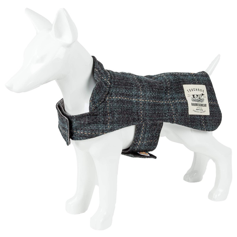 The Touch dog 2-in-1 Windowpane Plaided Dog Jacket with Matching Reversible Dog Mat features a matching Slate Gray, Aqua, Green and Beige heather or mélange windowpane plaided wool treated Exo-shell pattern composed of specially formulated blended exo-shell that is Breathable and slightly Flexible. The Dog Jacket features dual Heavy-Duty belly Velcro straps below the neck and around the waist and specially inner-lined with Diamond-Stitched High-Grade Polyester with dual expandable leg straps for added stability and a leash slit along the back-side. The Pet Bed is Reversed with a warm and comfortable Soft-to-the-touch Royal blue Sherpa-like treated blended cotton that gently hugs the body. The Pet Mat also features dual straps that wrap around and tie when rolled up. The is sold as a 2-piece matching set. The Dog Mat Dimensions vary based off of the Jacket sizing, read below for sizing. Available in Multiple Colors and Sizes. SIZING SPECIFICATIONS: In (Inches) "Back" Length is from Neck to Tail: * See image chart for sizing approximation EXTRA SMALL: JACKET: Back: 8.3" Chest: 17.7" Neck: 12.2" BED: 31.5" x 21.7" SMALL: JACKET: Back: 11.8" Chest: 21.7" Neck: 13.8" BED: 39.4" x 25.6" MEDIUM: JACKET: Back: 15" Chest: 24.4" Neck: 15.7" BED: 39.4" x 25.6" LARGE: JACKET: Back: 18.9" Chest: 29.9" Neck: 16.9" BED: 47.3" x 29.5" EXTRA LARGE: JACKET: Back: 22.8" Chest: 34.6" Neck: 18.9" BED: 47.3" - 29.5".