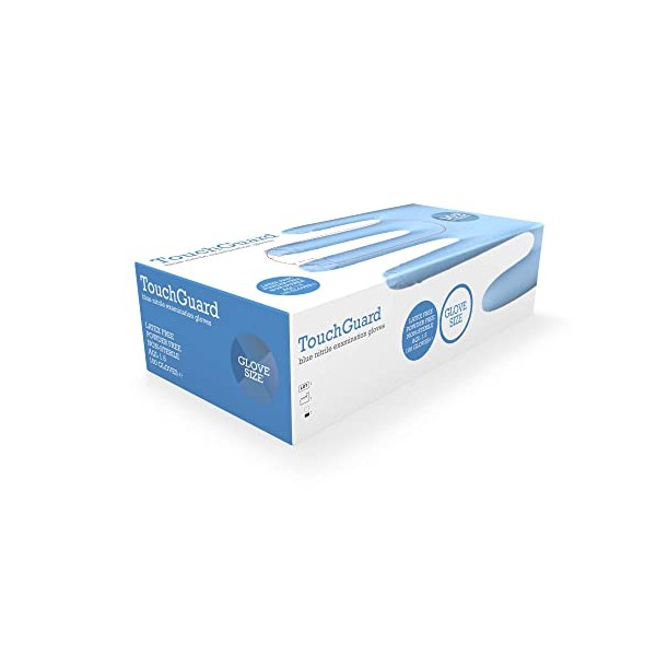 TouchGuard Blue Nitrile Disposable Gloves, Latex-Free & Powder-Free, Box of 100, Medium