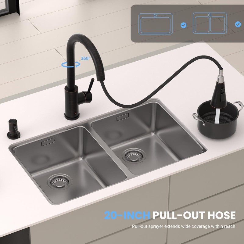 - Large Cleaning Range : This touch on kitchen sink faucets has 20” pulling length, 360° swivel design and 360° rotation spray head, enable you to reach around the whole sink, make your cleaning much easier and more thorough, gravity ball can help retract the spray head after every use