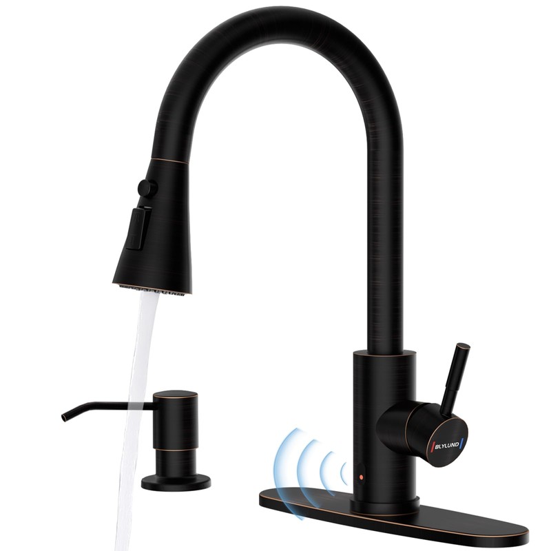 - Smart Touchless Technology : BLYLUND Touch kitchen faucet just need gently wave your hand to sense when the handle is open in the sensor modes. This kitchen faucet with soap dispensor will automatically turn off after 3 minutes of inactivity, helping you reduce water waste and save money. Hands-free kitchen faucet, more convenience and hygiene.