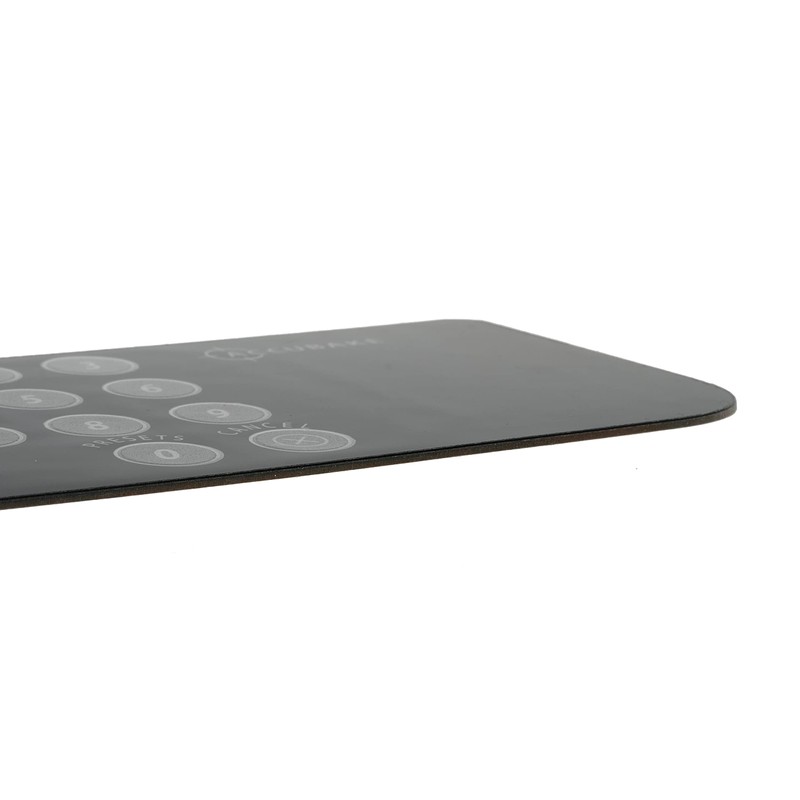 4.Place the unpeeled side of the keypad in perfect location, and only when placement is perfect on the unpeeled end, stick down the other (peeled) end. (It will be easier if you line up the top edge and tilt up a little from the bottom.)