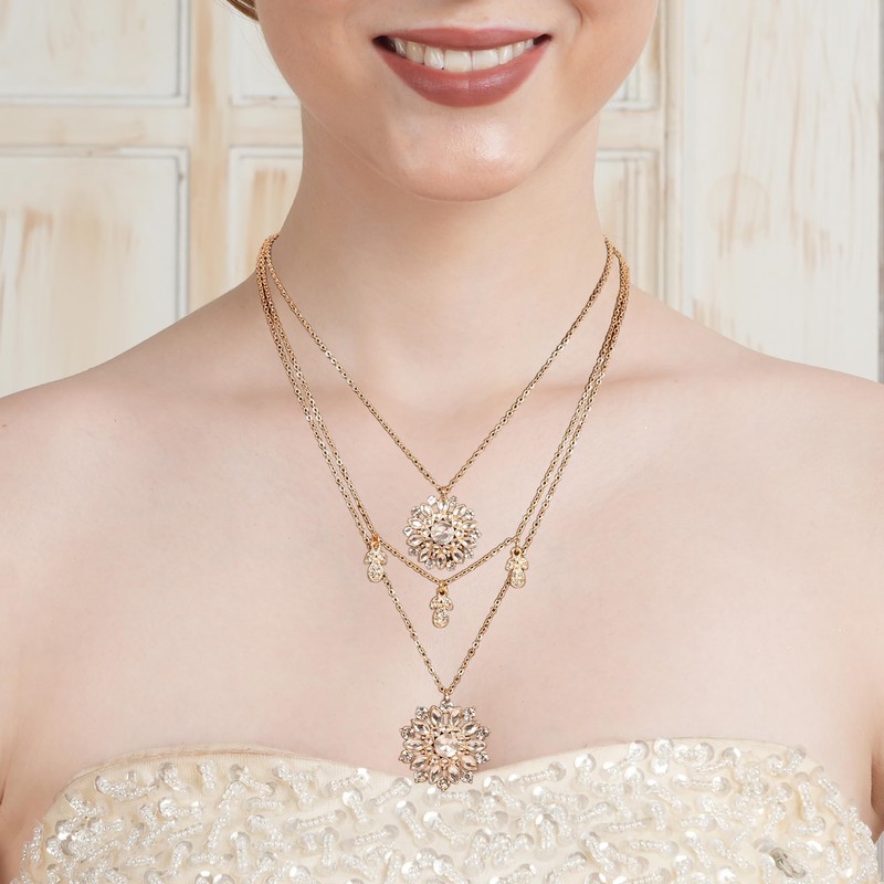 Alloy Metal, Fine Indian Traditional Floral Kundan Look Glittering Rhinestone Triple Chains Necklace In Gold Tone.