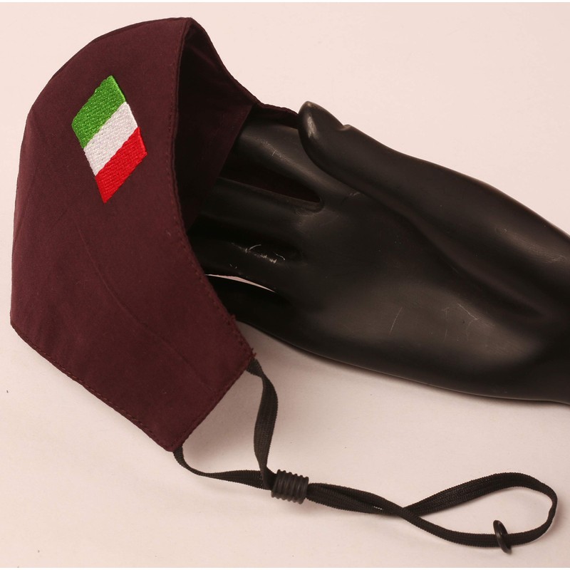 - Pack of 1. Wear your Belief. Patriotic cotton face masks embroidered with the Italian Flag. In a Cup Style. Adjustable with a toggle. Italian Flag on brown cotton