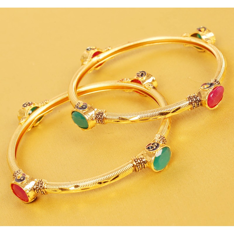 Touchstone New Indian Bollywood Desire Trendy Ethnic Oval Shape Faux Ruby Emerald Style Defining Designer Jewelry Bangle Bracelets Set of 2 in Gold Tone for Women.