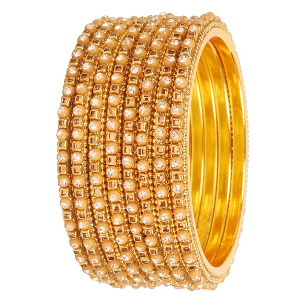Touchstone New Indian Bollywood Trends Smart Fashion Handcrafted Rhinestone Lac Embedded Style Defining Designer Jewelry Bangle Bracelets in Gold Tone. Set of 8. for Women.
