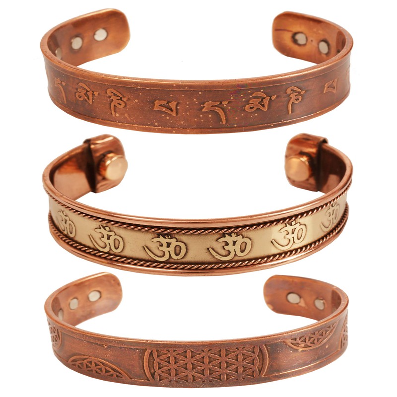 Touchstone Tibetan Indian Spiritual Buddha Bracelet Three Metal Copper Brass Peace Healing Chakra Yoga Meditation Mantra Jewellery for Women., Copper, Copper & Brass 6