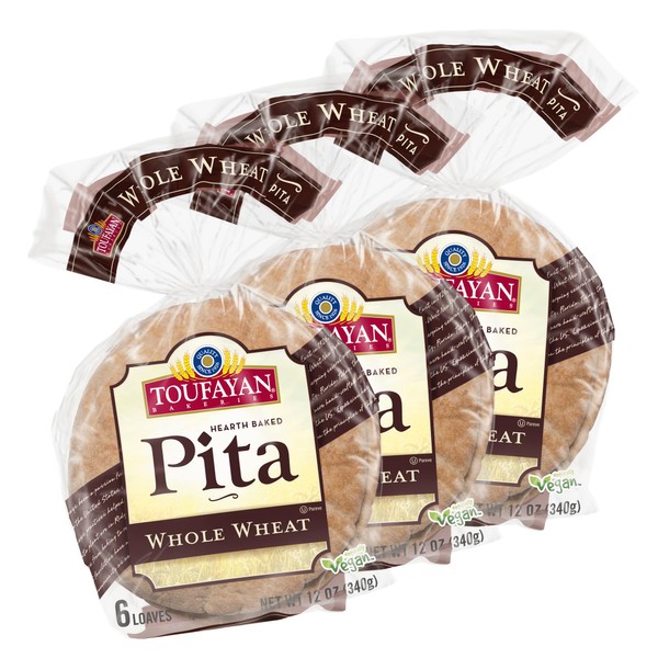 Toufayan Bakeries, Whole Wheat Pita Bread (3 Pack, 18 Pitas Total)