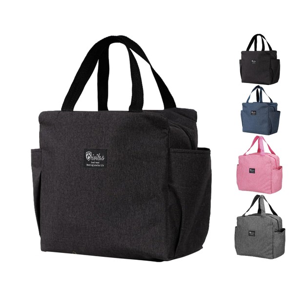 TOUFEIYUAN 大容量 保冷バッグ お弁当バッグ おしゃれ 撥水加工 保温保冷 最大8時間 弁当袋 飲み物 無地 ブラック 男女兼用 ランチバッグ アウトドア 職場 通学に (黒)