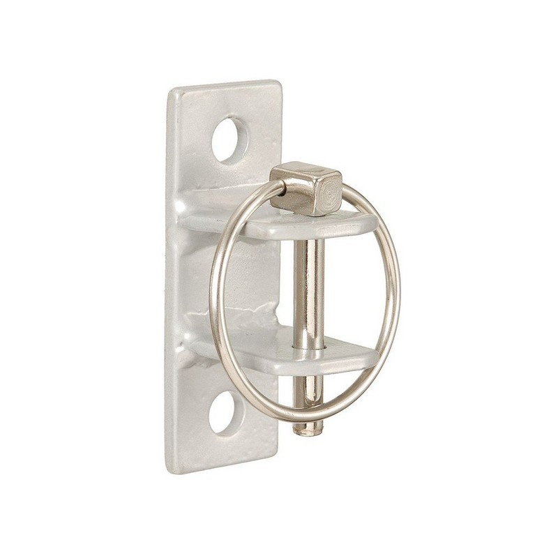 Locking Pin Bucket Hanger The Locking Pin Bucket Hanger easily mounts in a stall for hanging feed or water buckets. The removable locking pin makes it easy for refilling or cleaning.