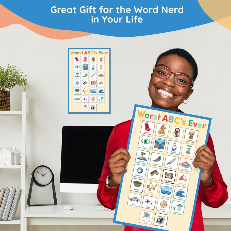 You will receive one (1) multicolor 11x17 inch "Worst ABC's Ever" phonetic alphabet poster. Frame not included.