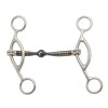 This single-jointed snaffle is outfitted with H-style sliding cheeks. It's made of durable stainless steel with a sweet iron and copper inlay mouthpiece to promote salivation. Helpful for teaching a horse to bend. The addition of a curb chain to this bit can help increase speed, rating, and stop. (Please note: sweet iron is designed to rust). 5" Mouthpiece, 6 1/2" Cheek.