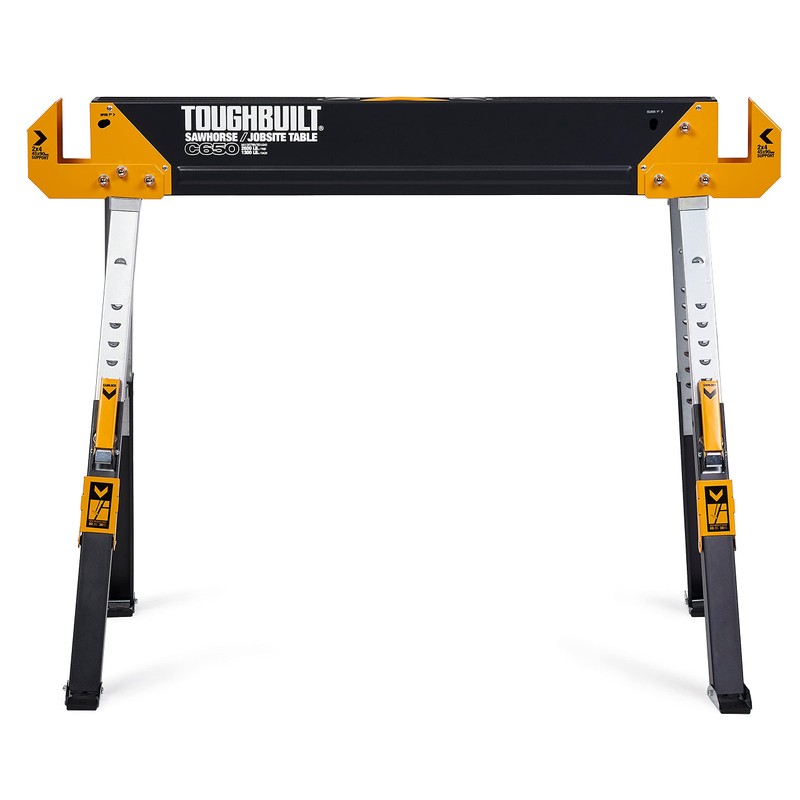 ToughBuilt - Folding Sawhorse/Jobsite Table - Sturdy, Durable, Lightweight, Heavy-Duty, 100% High Grade Steel, 1300lb Capacity, Pivoting Feet, Adjustable Height Legs - (TB-C650) - 2 Pack