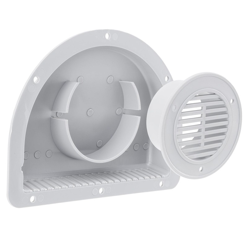 - This vent is designed to scoop air from the outside by using the wedge shaped outer piece and circulate it through the round inside vent into the trailer.