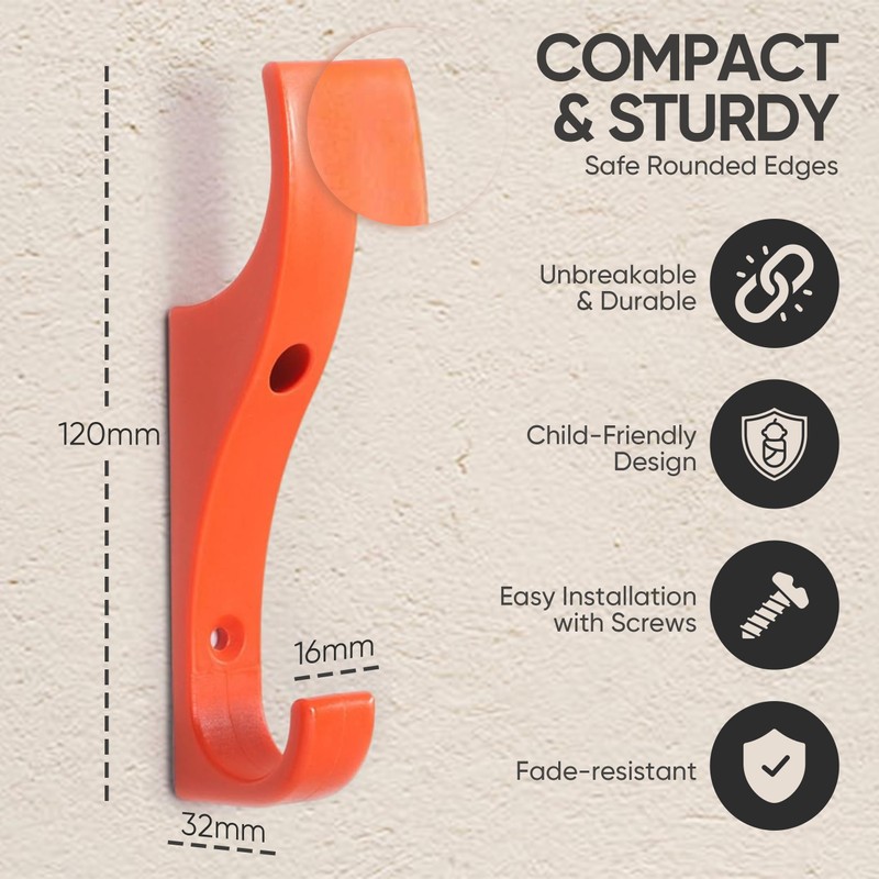 Toughook Unbreakable Plastic Safety Coat Hooks 10 Pack (Orange)
