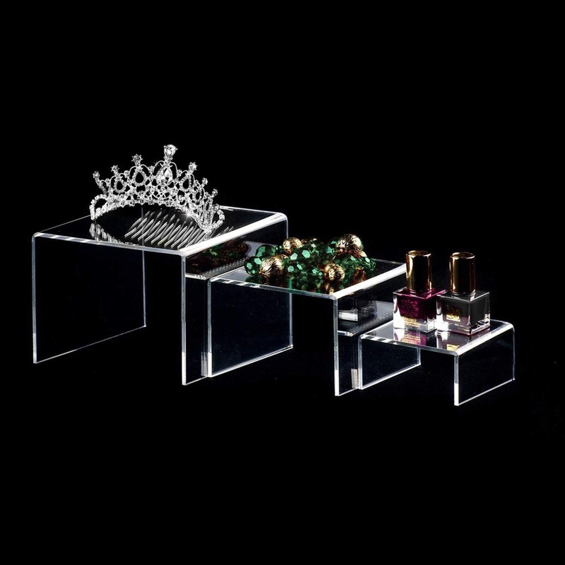 - Material: these clear display risers are made of acrylic, transparent material looks neat and tidy, durable and stable to hold the exhibition