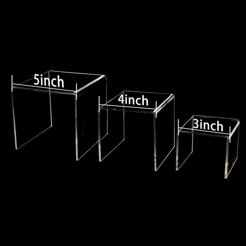 - Package includes: 3 pieces square transparent acrylic display risers in 3 different sizes.