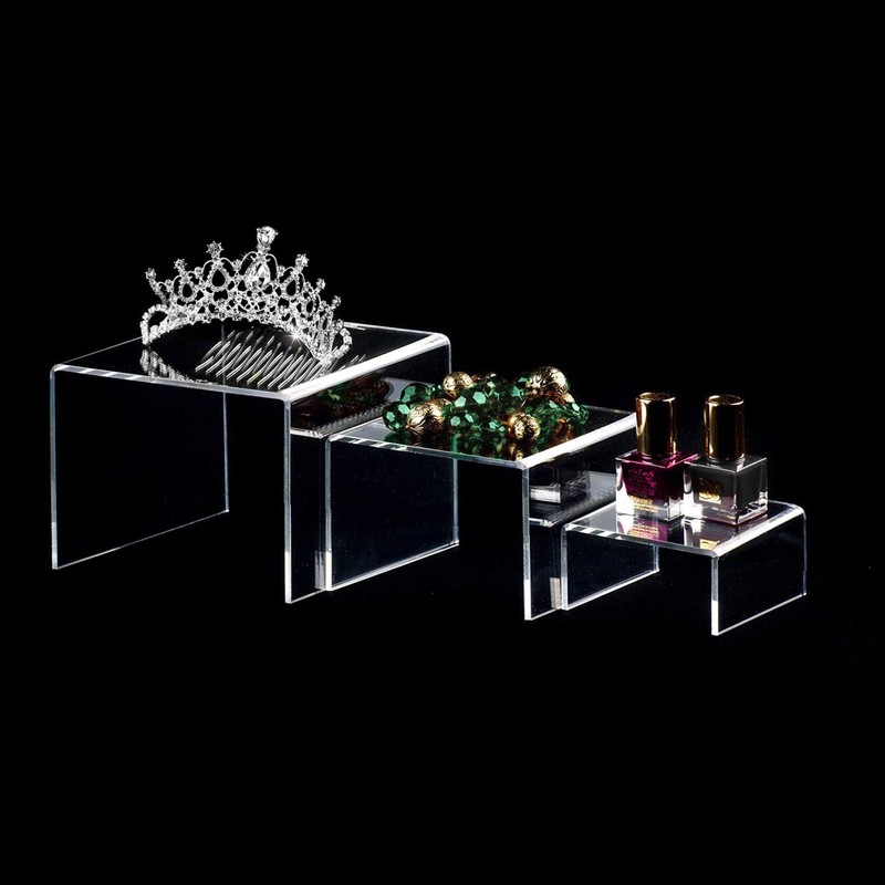 The clear acrylic display risers, durable and reusable, and they are easy to store, good display tool for neat and organized arrangement.