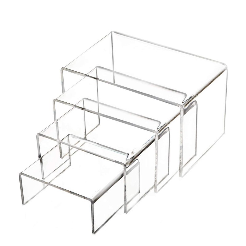 TOUGS Clear Acrylic Display Risers, 4-Packs Showcase Shelf for Figures, Buffets, Cupcakes and Jewelry Display Stands, with Sticky Protective Film