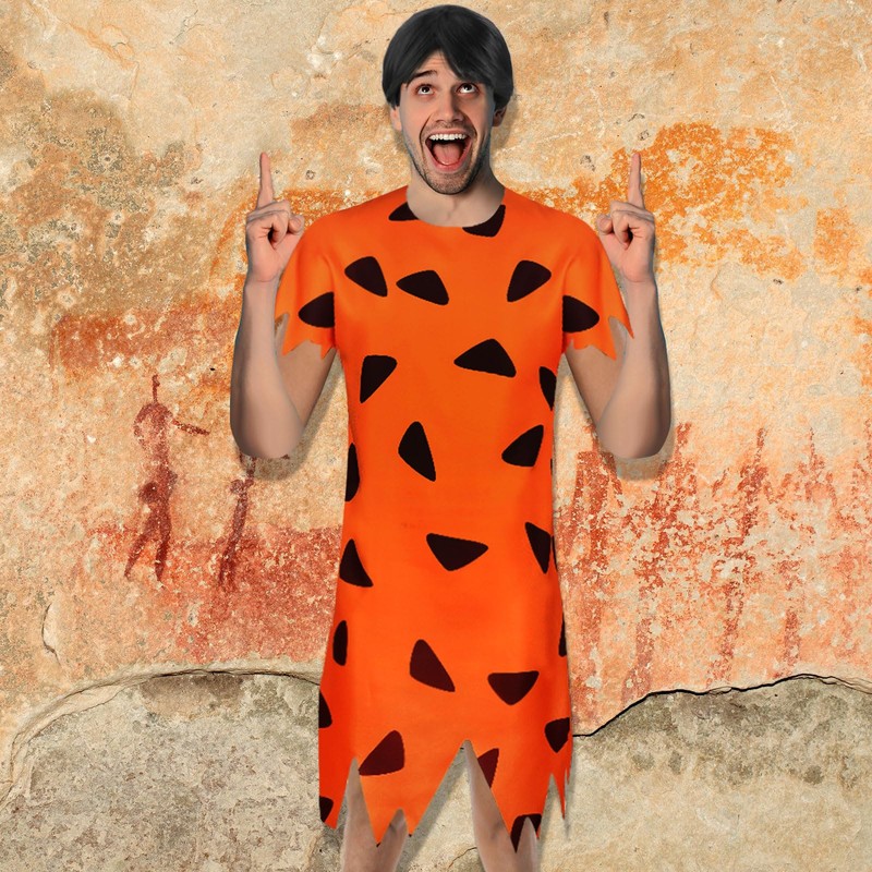 - Nice Combination: the orange caveman costume features a distinctive shape and jagged hem to resemble the classic cartoon's pleasing character; Also, the charming wig adds more authenticity to your prehistoric character's look; This costume adult men promise an unforgettable prehistoric experience