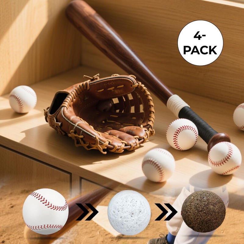 - CLASSIC WHITE DESIGN: Each baseball in this four-piece set features a pure white leather outer layer with red seams carefully stitched to make the ball's trajectory more visible, reflecting the timeless look of the sport.