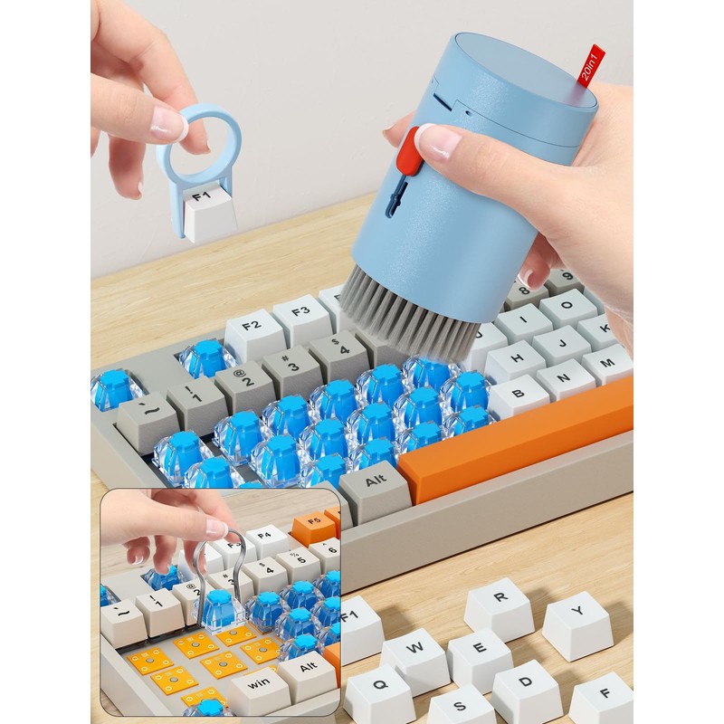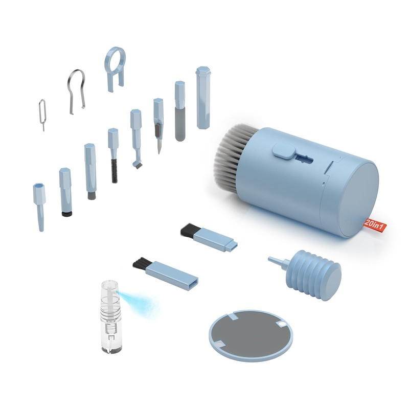 Tounee Keyboard Cleaner Kit, Electronics Cleaning Kit with Retractable Big Brush, Portable, 20 in 1 Multi-Tool Kit for Phones, Tablet, Computer, PC Monitor,TV Camera Lens with 2.5ml Mist Spray (Blue)