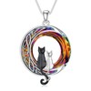 TOUPOP Cat Gifts for Cat Lovers 1 2 3 Cats Necklace Sterling Silver Cat on the Moon Pendant Necklace with Blue Circle Crystal Birthday Christmas Celtic Jewelry Gifts for Women, Sterling Silver,