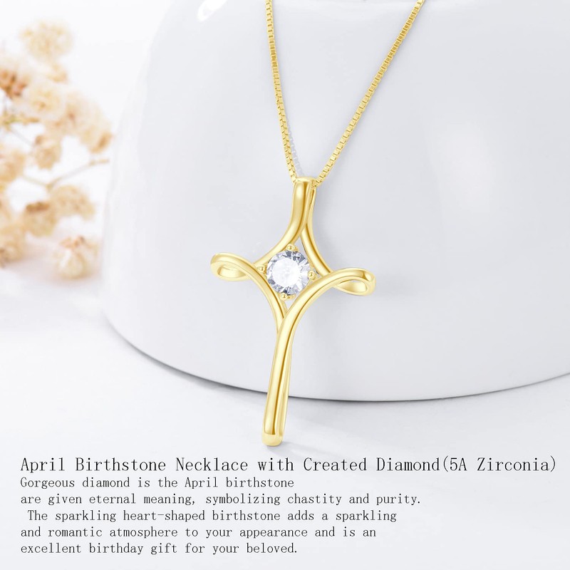- ✞ April Birthstone Necklaces for Women 💕 There are 12 months birthstone cross necklaces for women, each gemstone's color is corresponding to birth month, you can chose the color according to your birth month. Created Diamond for April - symbolize Calmness & Brave & Smart.. This gentle white diamond cross necklace pendant is a great idea for women.