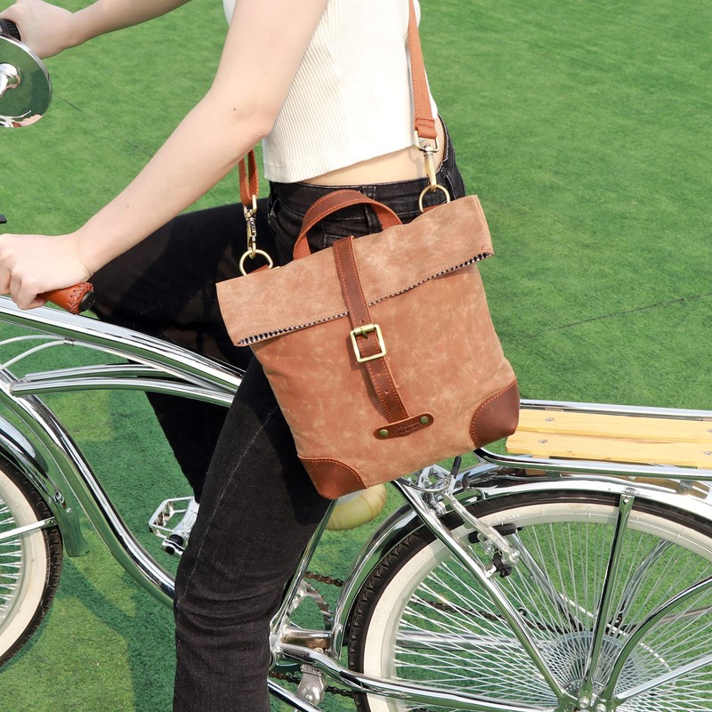 Tourbn Wax Canvas Leather Bicycle Back Seat Bag for Women Shoulder Messenger Handlebar Bag