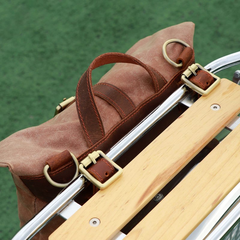 - Tourbon bike bag is made of high quality wax canvas and genuine leather.