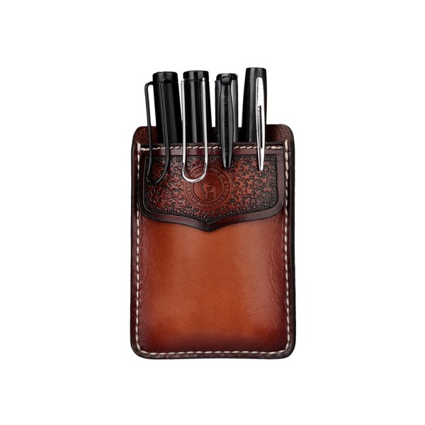 TOURBON Chest Pocket Pen Holder Genuine Leather Guard Tool Pen Holder Pocket Protector, Braun, Rectangle