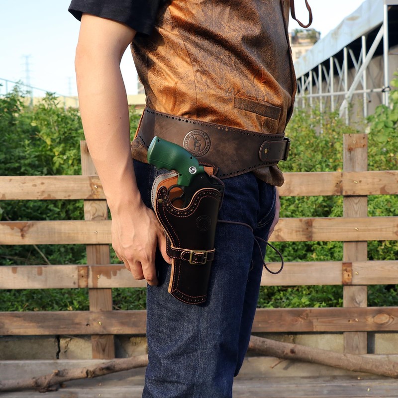 - Equipped with a Tie-down Strap: Gun belt holster is equipped with a tie-down strap to tie around your leg to keep the gun from any unwanted movement.