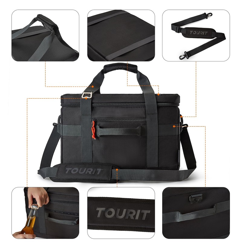 TOURIT Cooler Bag 48-Can Insulated Soft Cooler Large Collapsible Cooler Bag 32L Lunch Coolers for Picnic, Beach, Work, Trip, Black